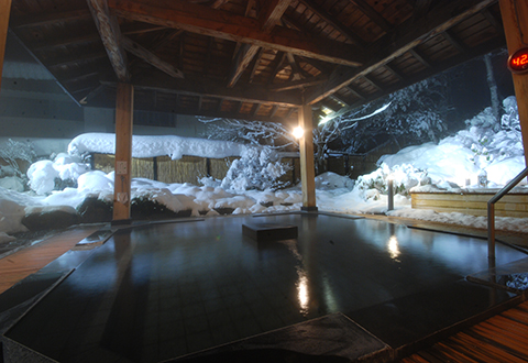 <リフト券付/なし選択OK> 岩岳ゴンドラ乗り場まで:シャトル80分 大町温泉郷随一の広さを誇る大浴場は入替制で2つの温泉を楽しめるのが魅力!